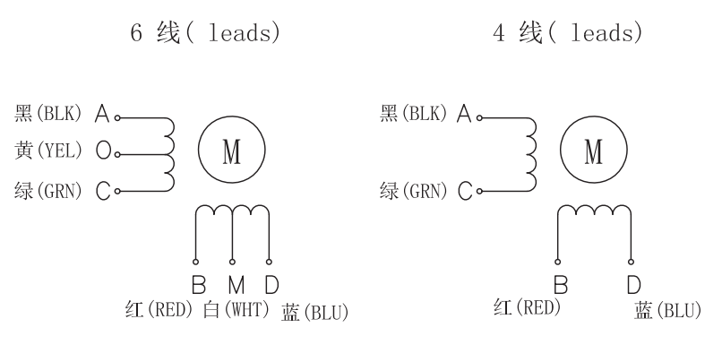 型号(Model No.) | Current /Phase 每相 电流 | Resistance /Phase 每相 电阻 | Inductance /Phase 每相 电感 | Holding Torque 保持 转矩 | Detent Torque 定位 转矩 | # of Leads 引出 线数 | Rotor Inertia 转动 惯量 | Weight 重量 | Length 机身 长度 |